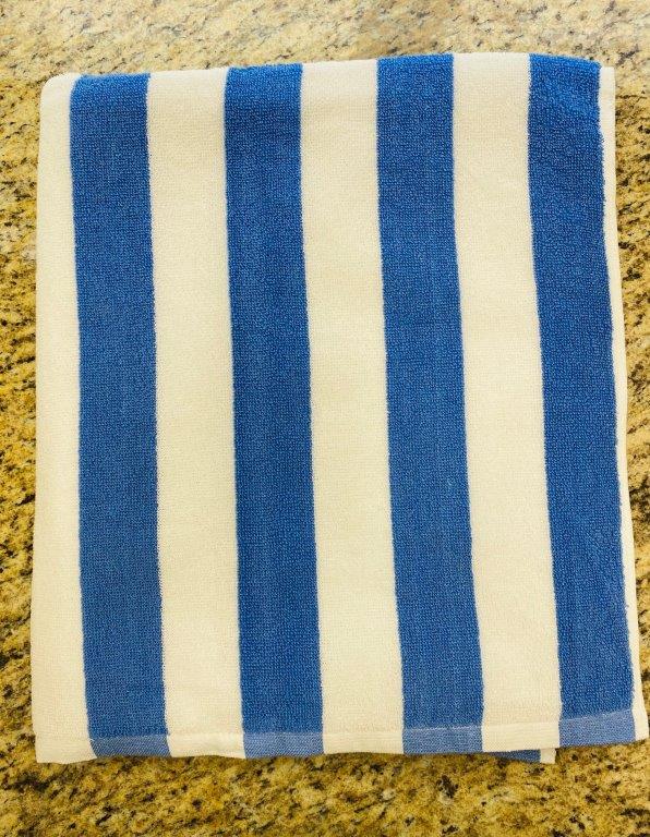 Economical Pool Towel Cabana, White Color with Blue Stripes, 1 Doz/Case