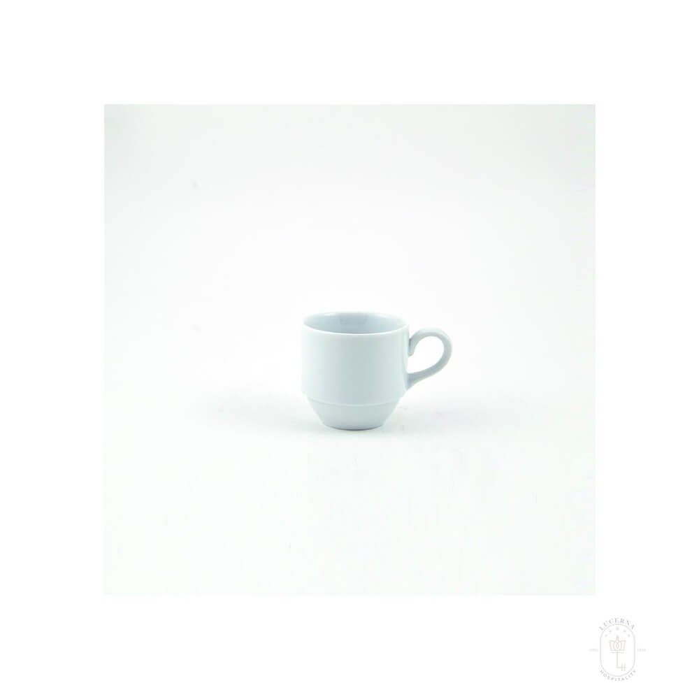 Irabia Porcelain Spain presents its stackable espresso cups, meticulously crafted from hard white porcelain featuring vitrified enamel selected for its exceptional quality and uniform white color. Engineered to meet stringent standards, these cups ensure seamless compatibility across different production batches, maintaining consistency in appearance.