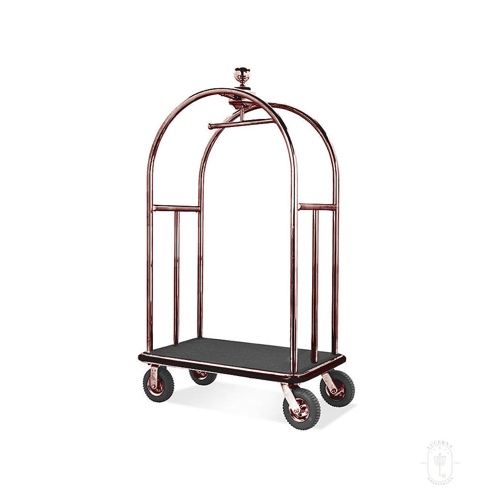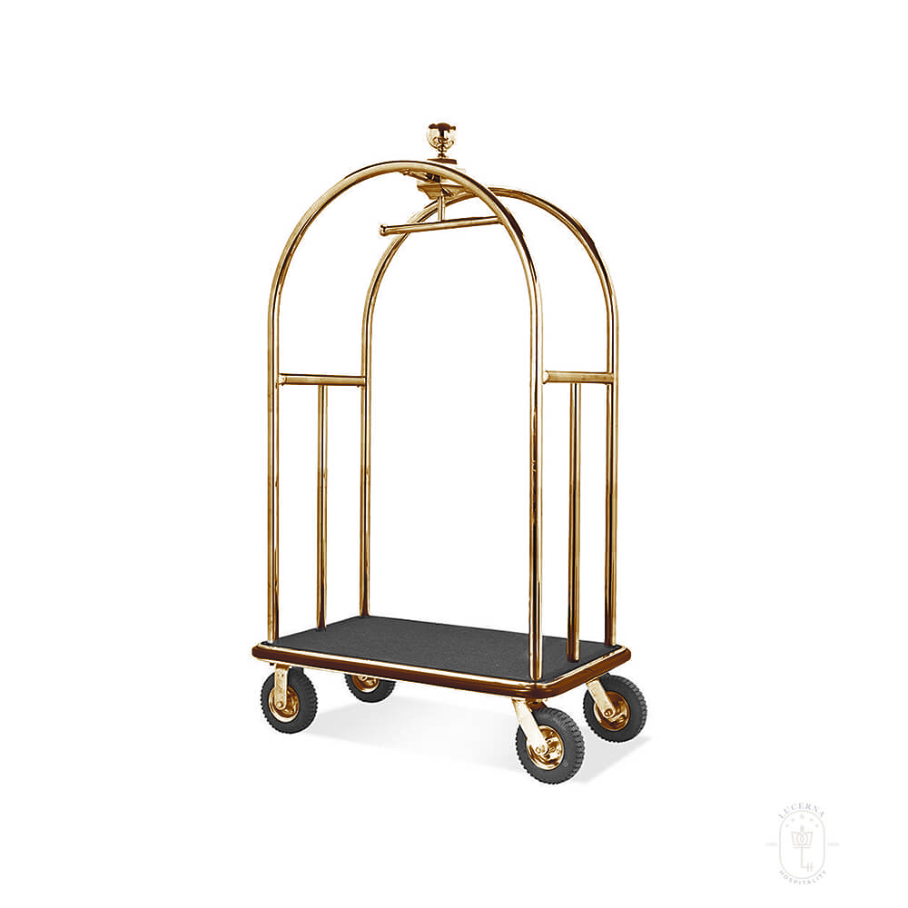 Introducing the Lucerna Hospitality Luggage Hotel Cart, your ideal companion for hotels, motels, convention centers, and more. Available in three sophisticated colors – brass, golden, and silver – this luggage cart combines both functionality and style to enhance your guest experience.
