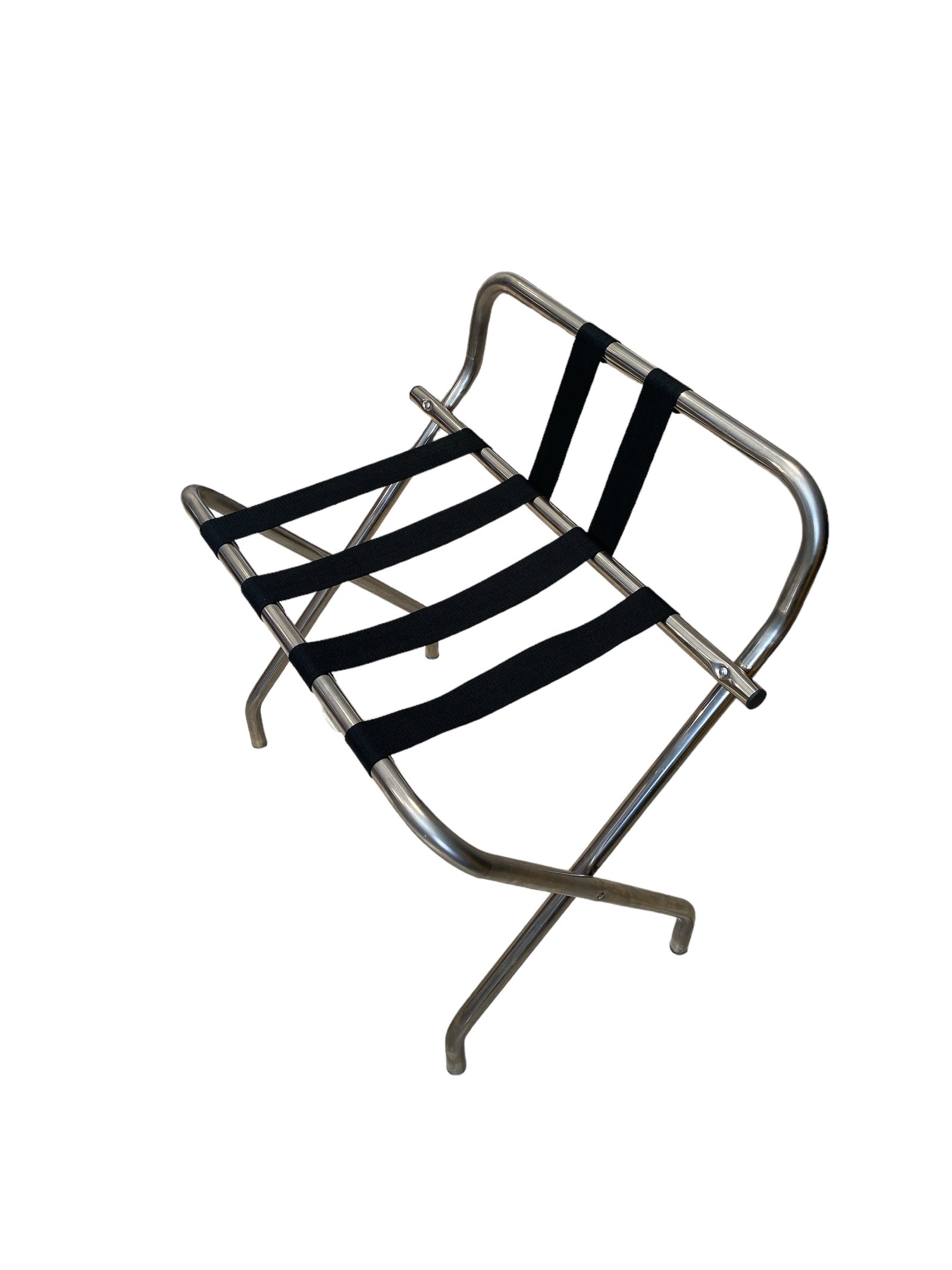 The stainless steel frame ensures the rack’s stability and longevity, providing a reliable platform for your guests’ luggage. The reinforced black heavy-duty polypropylene straps not only add a touch of elegance but also offer robust support.