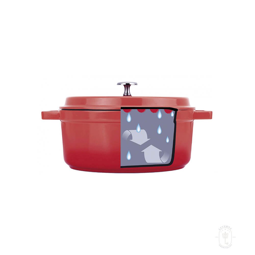 The interior of the lid is specially designed to allow moisture droplet formation, ensuring ideal moisture circulation within the casserole. This innovative feature enhances the flavor retention of your dishes, leaving your meals bursting with taste.