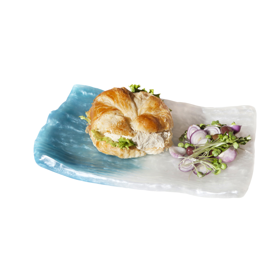 The resin construction offers exceptional durability, making the tray both break-resistant and lightweight, ideal for high-traffic hospitality settings. It is also dishwasher safe, allowing for easy cleaning and long-term use without compromising appearance. Suitable for sandwiches, shared plates, or creative culinary presentations, this tray delivers a balance of artistic expression and practical performance. Sold individually.