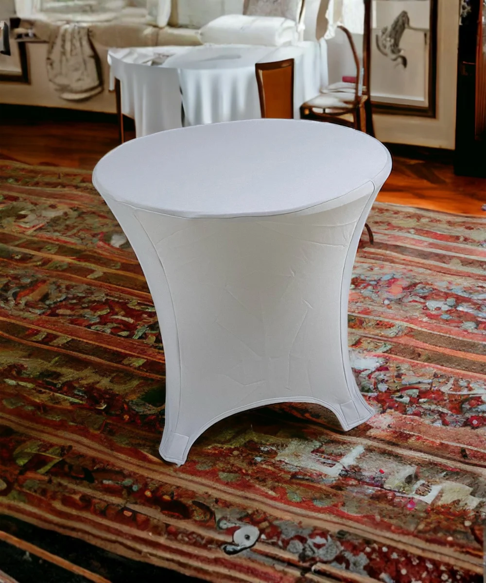 Whether it’s a wedding, outdoor event, banquet, or any special occasion, Lynn’or’s Spandex Cocktail Table Cloth adds a touch of elegance and refinement to any setting. Each tablecloth comes neatly packaged, ensuring convenience and ease of transportation for event planners and hosts alike. Elevate your decor with Lynn’or and make every moment unforgettable.