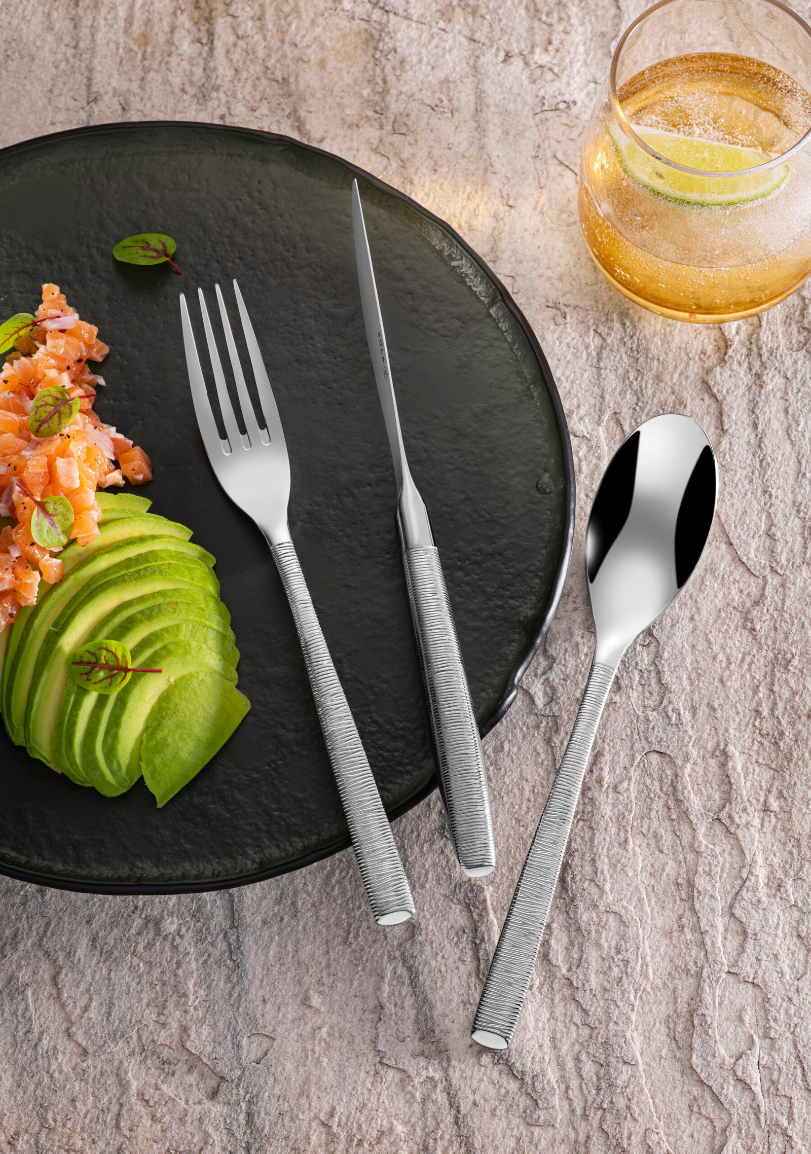 Designed to add a touch of class to any dining experience, the Hermitage steak knife features a classic cutlery design with a refined relief pattern and a balanced, comfortable handle. This makes it a fitting choice for anyone who appreciates both style and practicality at the table.