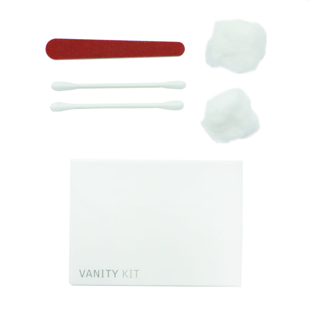 The kit includes 2 cotton buds, 2 cotton rounds, and 1 wooden nail file, covering basic grooming needs in a simple and practical format. Each component is selected for everyday comfort and ease of use, making it a reliable addition to guest amenities.